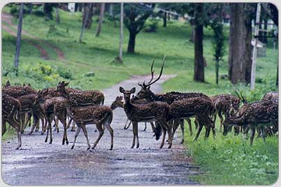 Nagarhole National Park (also known as 'Rajiv Gandhi National Park') is located 94 km away from Mysore. It is spread between Kodagu and Mysore districts. The national park has rich forest cover, little streams, valleys and waterfalls. The place derives its name from Kannada - Naga meaning snake and hole referring to streams.