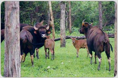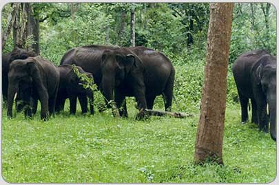 Fauna and flora Mammals: Elephant, Jackal ,Tiger, Panther, Gaur, Muntjac, Sambar, Spotted deer, Elephant, Mongoose, Civet cat, Hyena Reptiles: King Cobra, Krait, Python, Viper, Tortoise, Monitor Lizard ,Toads etc. The main trees found are Rosewood, Teak, Sandalwood and Silver oak.
