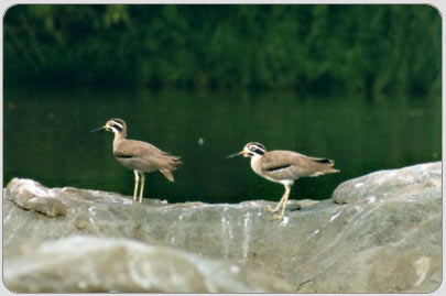 The Mugger Crocodile or Marsh Crocodile is a common inhabitant of the riverine reed beds. Breeding water birds include Painted Stork, Asian Openbill Stork, Common Spoonbill, Woolly-necked Stork, Black-headed Ibis, White Ibis, Lesser Whistling Duck, Indian Shag, Stork-billed Kingfisher and other common birds like egrets, cormorants, Oriental Darter, and herons. The Great Stone Plover, and River Tern also nest here. The park is home to a large flock of Streak-throated Swallows
